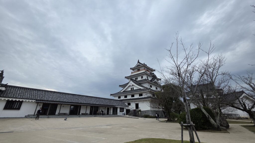 入口の階段を上がってると降りていく一匹の猫とすれ違いました。城に上がって天守閣から城下町を見下ろして戻ってくると、城の庭にその猫が登ってきていて、こちらを見てました。こちらが「ニャ~」と鳴き真似をする度に1mくらいずつ近付いてきて、足元まで来ると、体をスリスリしてめちゃくちゃ懐いてくれるのでした。思わず「バロンか?」と、またまた生まれかわりと思ってしまいそうでした。